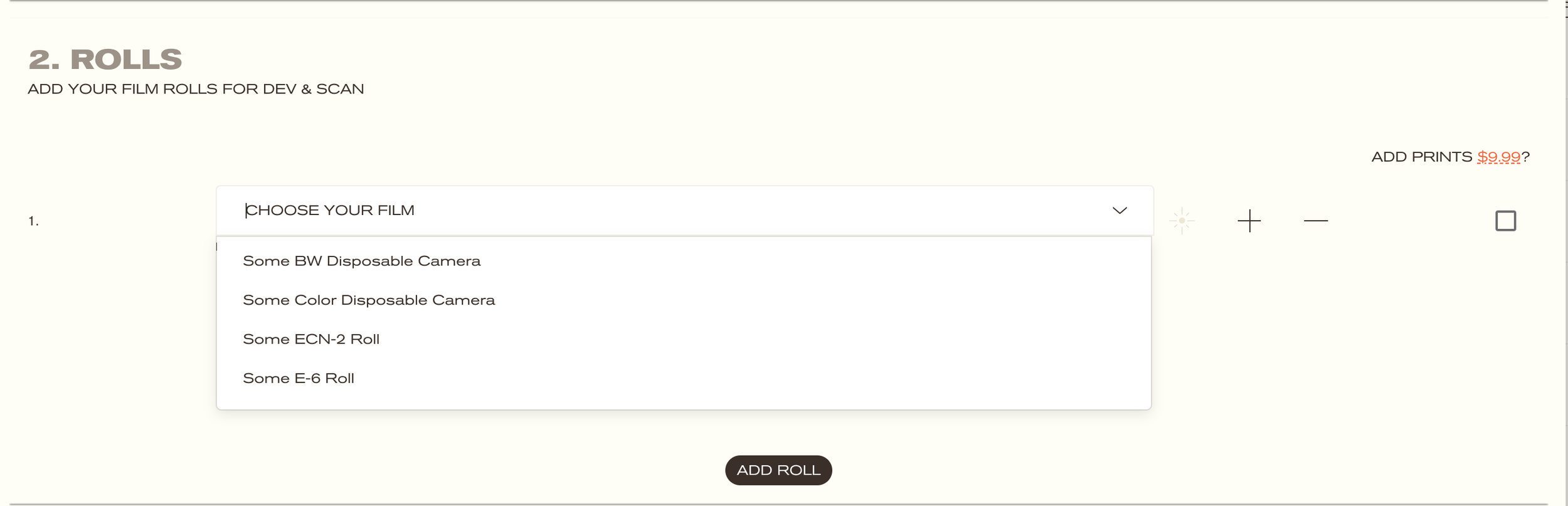 We develop disposable cameras every day in house at NICE. If you are unsure what kind of 35mm film is in the disposable film camera you’re dropping off, simply select one of our “Some Disposable Camera” options from the roll dropdown menu